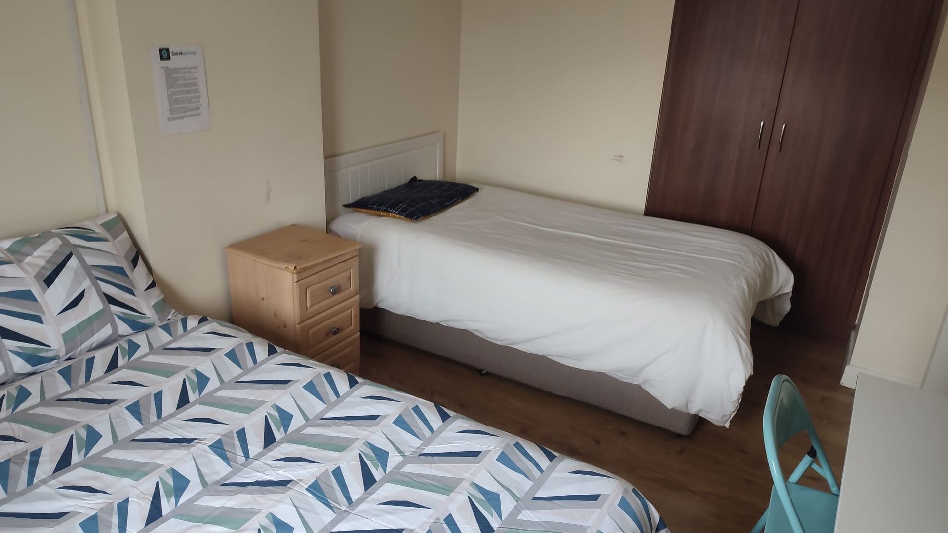 This property is a centrally located two-storey house in the historic Woodquay district, in a row of quaint, characteristic Galway residential buildings. The house consists of 5 bedrooms (fully furnished), 1 modern bathroom completely renovated, a renovated fully equipped kitchen, washing/drying machine. All rooms are equipped with beds, wardrobes, and desks.